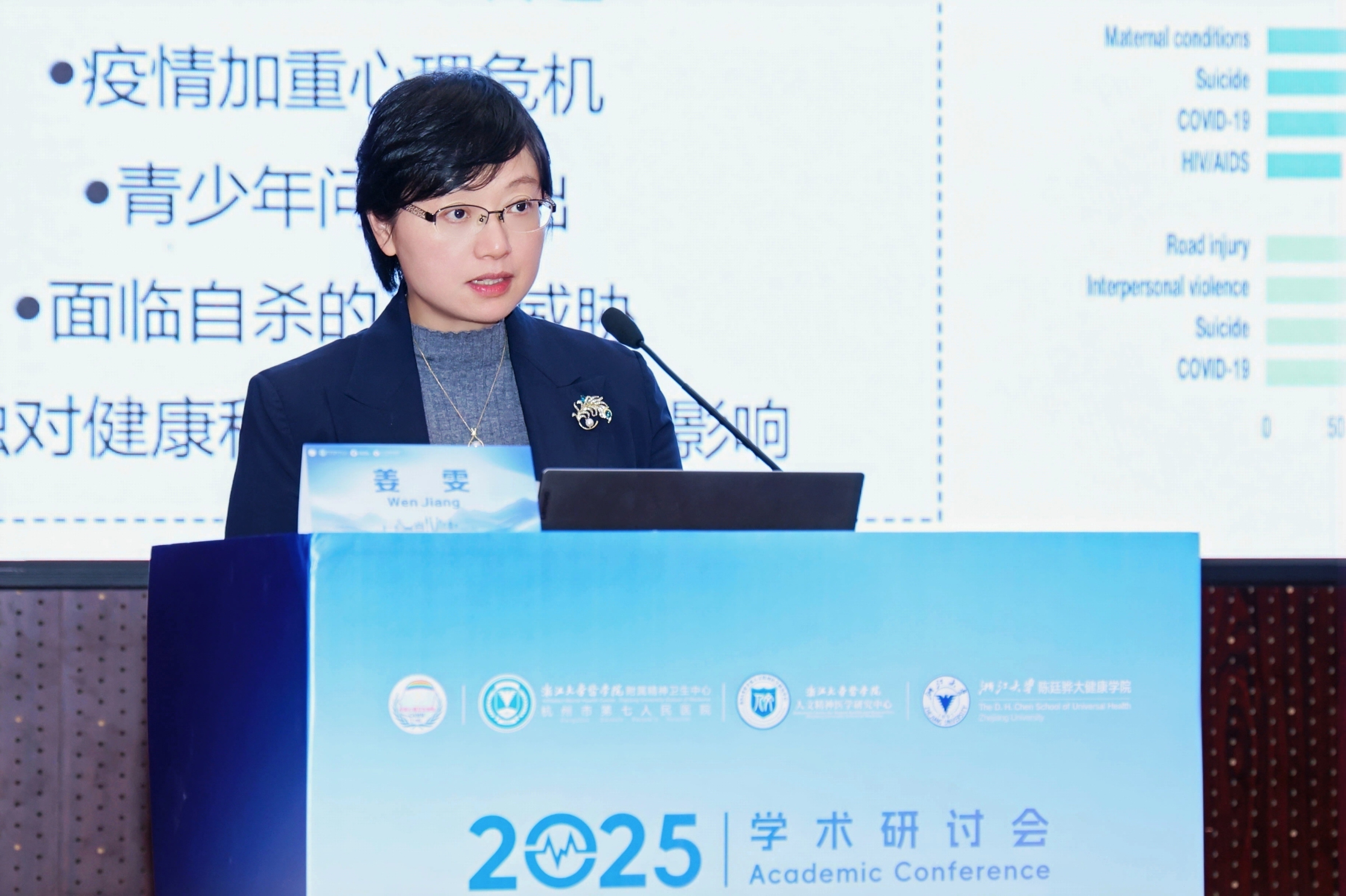 国家心理健康和精神卫生防治中心党委副书记、纪委书记姜雯介绍全球心理健康问题的严峻形势,指出心理健康深度融入大健康战略,融入社会经济发展全局成为世界共识。国家心理健康和精神卫生防治中心坚定不移践行“立足医,扩大防,构建网”的总方针,推动实现从“以疾病为中心”到“以健康为中心”的转变。
