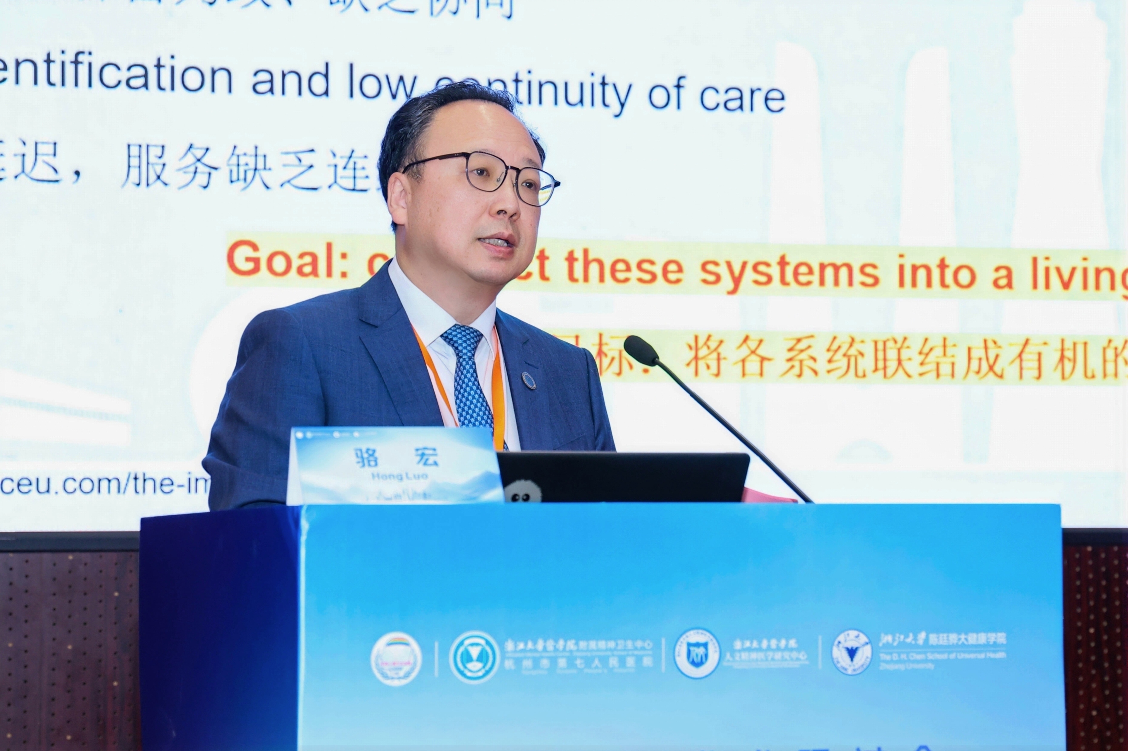 国家心理健康和精神卫生防治中心党委副书记、纪委书记姜雯,牛津大学副校长Richard Hobbs,杭州市卫生健康委员会党委委员、副主任、市疾控局局长王旭初,中国心理卫生协会副理事长赵旭东,浙江省儿童青少年心理健康与危机干预智能实验室首席专家李伟健等出席大会。