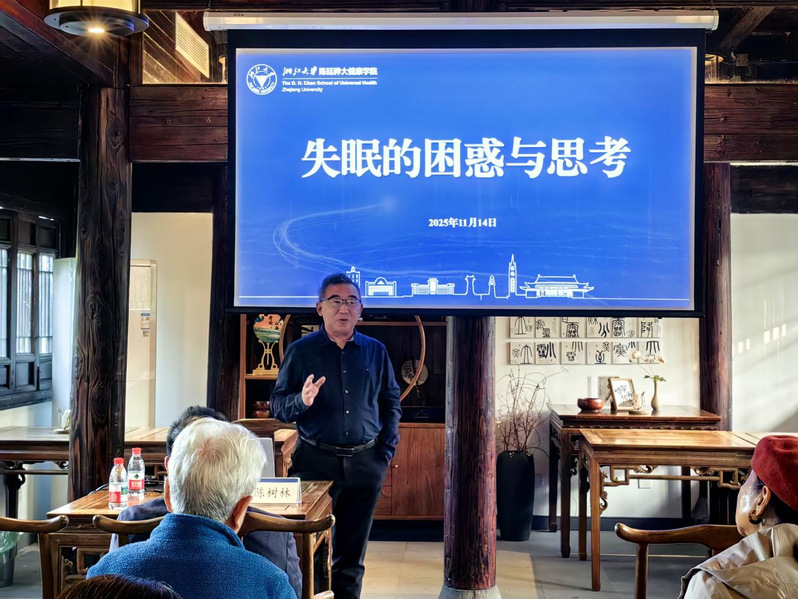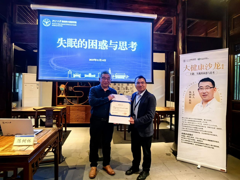 2025年11月14日下午,浙江大学陈廷骅大健康学院在紫金港校区南华园成功举办第四期“大健康沙龙”。本期沙龙特邀浙江大学心理与行为科学系陈树林教授担任主讲,围绕“失眠的困惑与思考”展开一场深度漫谈,引领听众走进睡眠科学与心理疗愈的交叉视野。